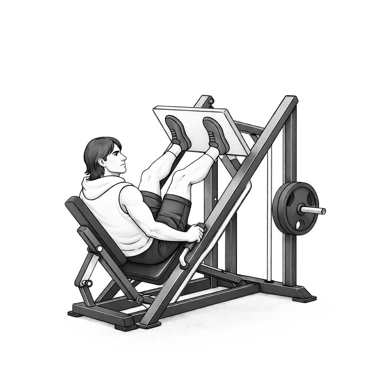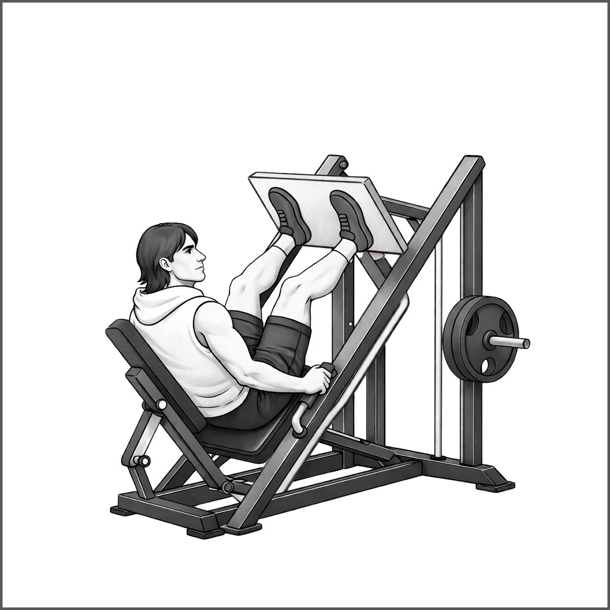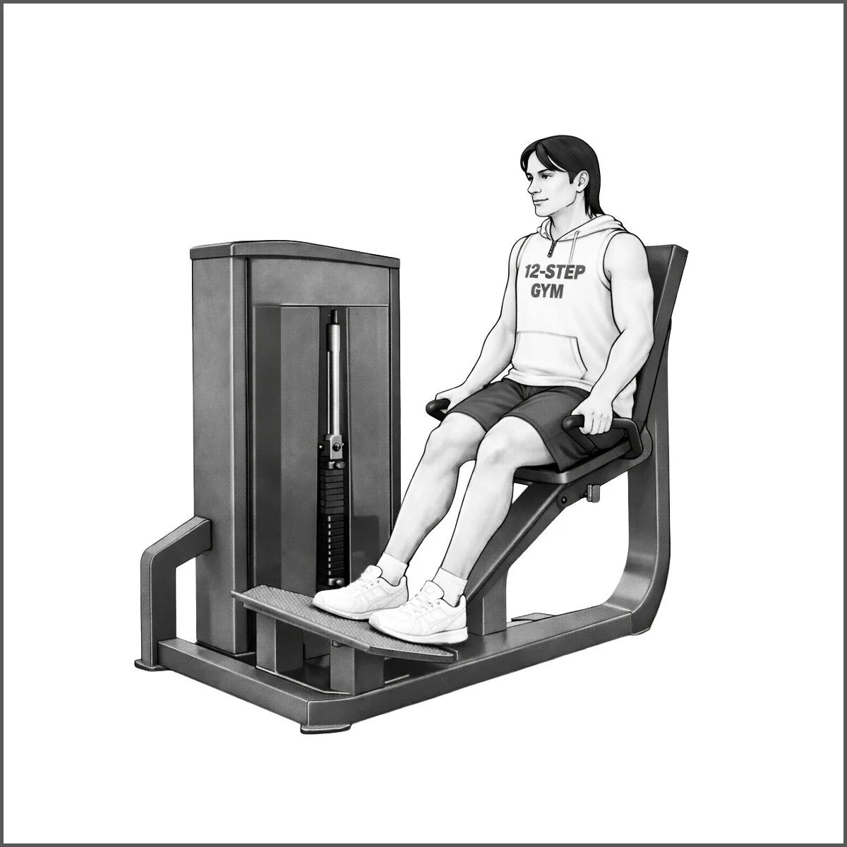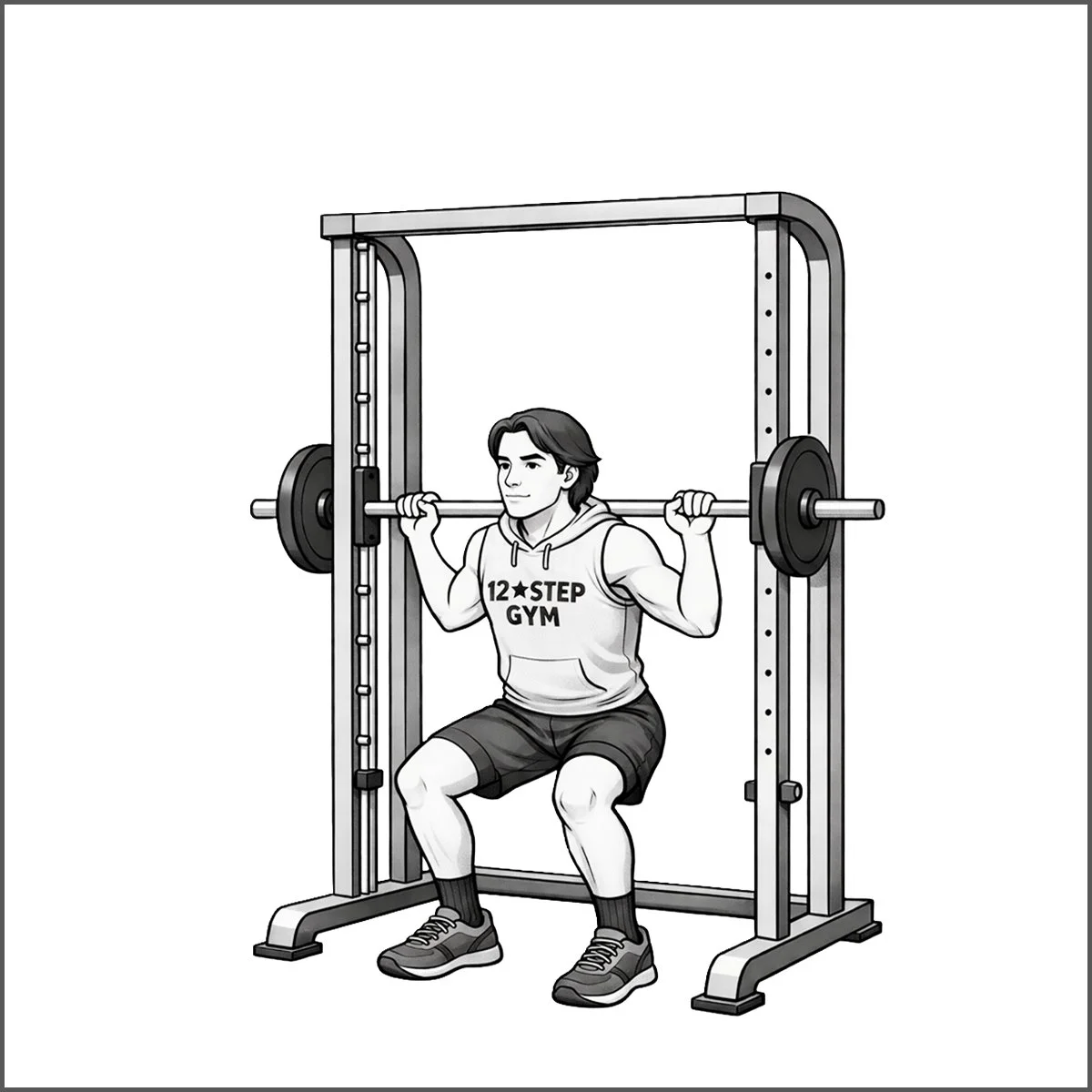 Set the seat back in the most upright position. Set your feet at shoulder width. Release safety stop. Slowly lower and raise the weight in a ‘squat’ position.