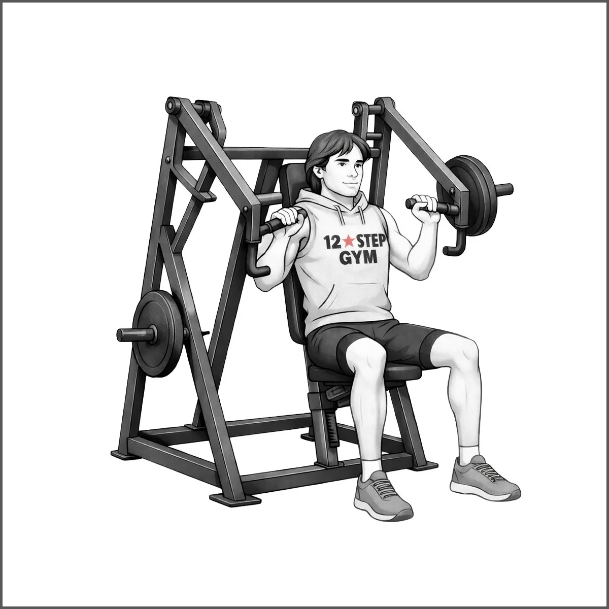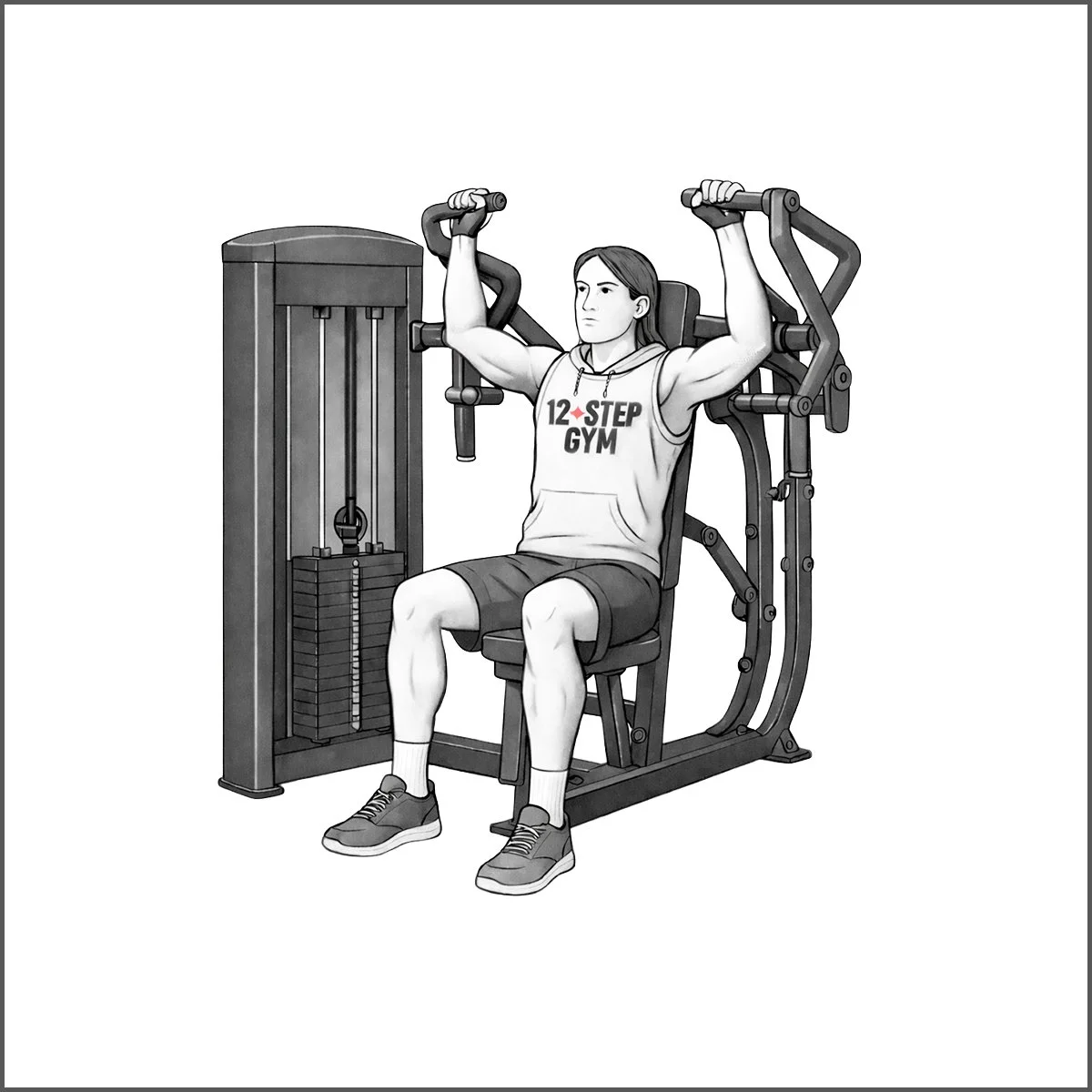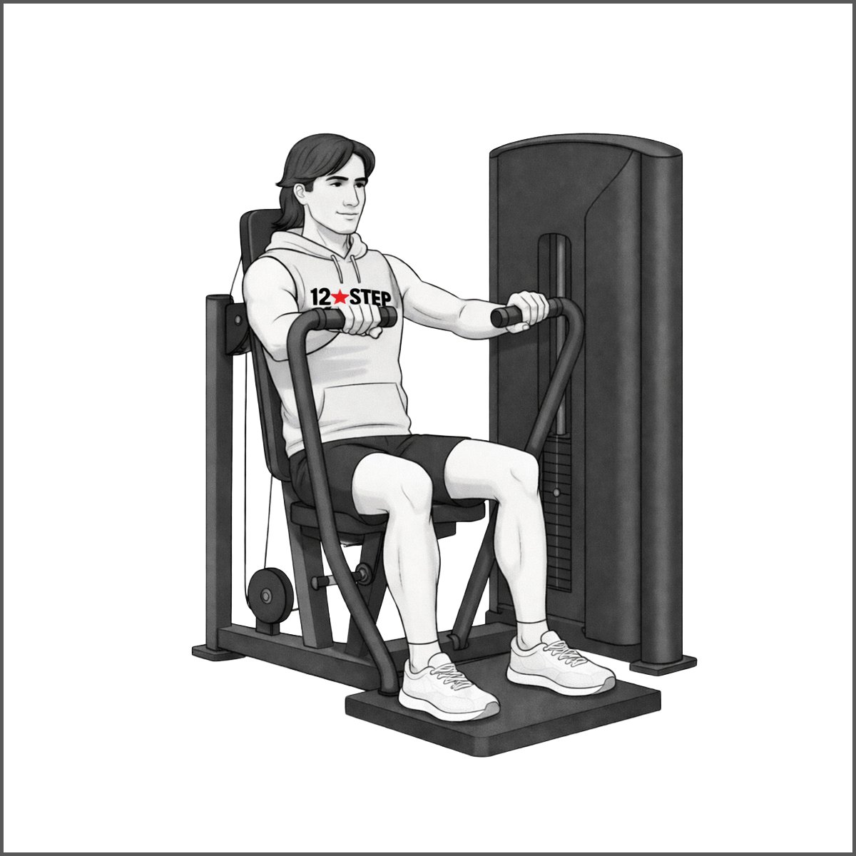 Set the seat so you can achieve full arm extension. Lift with your elbows in, palms facing up. Don’t manhandle the grips. Steady push – no jerks.