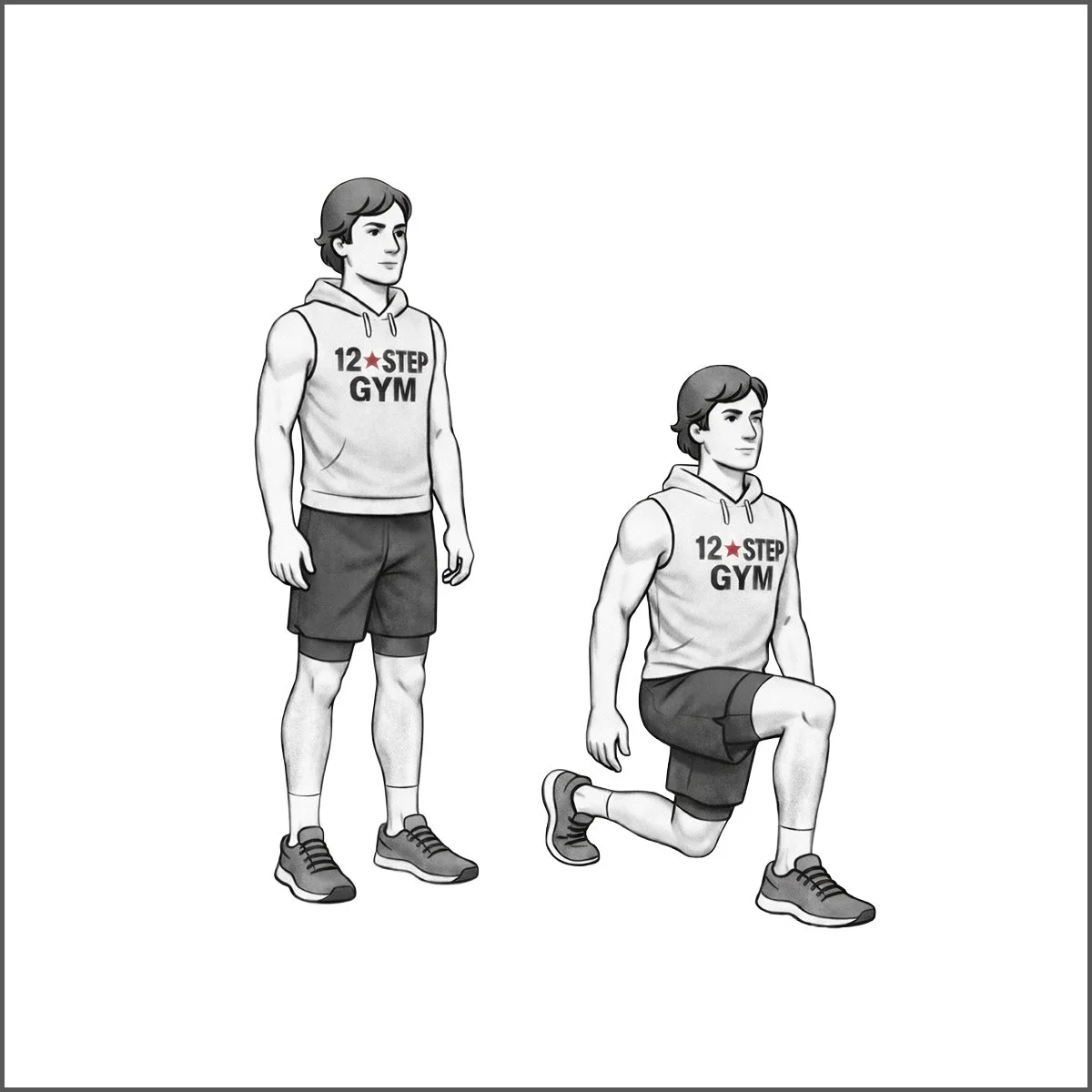 Take a long step forward with your right leg and lower your left knee to the floor. Raise yourself up to a standing position - alternate steps.